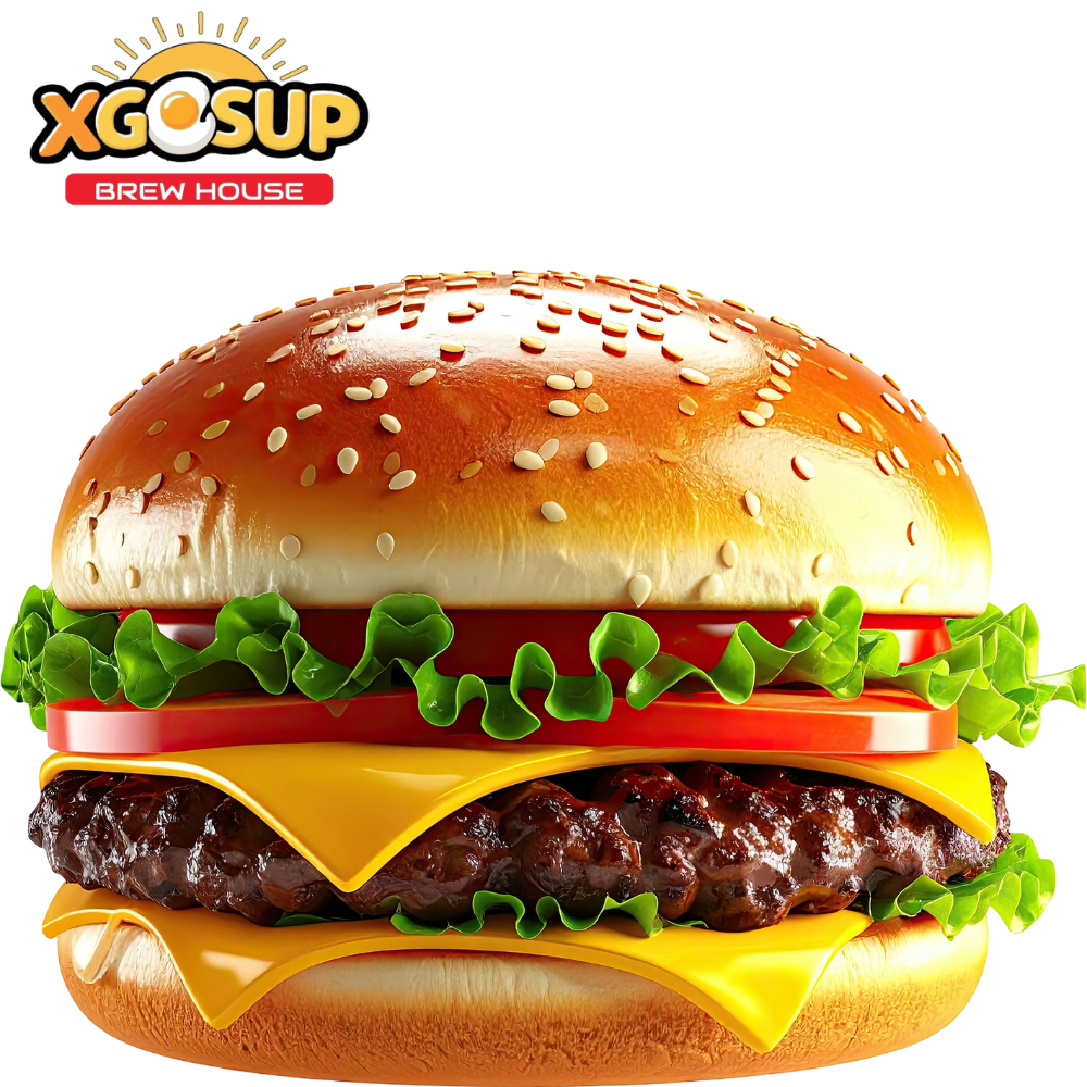 8oz patty, bacon, lettuce, cheddar cheese, tomatoes, onions, pickles, homemade sauce, topped with a fried egg